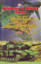 - Description: ဗြိတိသျှ၊ အမေရိကန်နှင့် နိုင်ငံတကာတွင် လက်ရှိကျင့်သုံးနေသည့် ဝေါဟာရများအနက်မှ စစ်ဝေါဟာရ ငါးထောင်ငါးရာ၏ အနက်အဓိပ္ပာယ်နှင့် အသုံးပြ သာဓကဝါကျတို့ကို အတူယဉ်တွဲကာ ပြုစုထားသော အင်္ဂလိပ်-မြန်မာ စစ်ဝေါဟာရအဘိဓာန်ဖြစ်သည်။ ရာထူးအဆင့်များ အခေါ်အဝေါ်၊ စစ်နည်းဗျူဟာ၊ စစ်ကစားနည်း၊ အသုံးများလက်နက်၊ ယာဉ်၊ တပ်ဖွဲ့စည်းမှု ပုံစံ၊ ဆက်သွယ်ရေးသုံး အက္ခရာများ၊ နေတိုးအဖွဲ့၏ ကွပ်ကဲမှုစနစ်၊ လုပ်နည်းလုပ်ဟန်များ အပါအဝင် စစ်မှုထမ်းများနှင့်တကွ စစ်ရေးစိတ်ဝင်စားသူများ မသိမဖြစ် သိထားရမည့် ဝေါဟာရများကို ရွေးချယ်ကာ အဘိဓာန်ပြုစုထားခြင်းဖြစ်သည်။